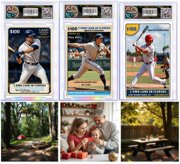 Land Trading Cards are limited-edition collectibles that give you legal ownership of real land in Florida. Each card represents a specific amount of square footage—own more cards, own more land. Own a Piece of Florida — One Card at a Time Each card represents a specific amount of square footage from the lot size, and only 500 cards exist. “Start with one card – Your piece of Florida.”